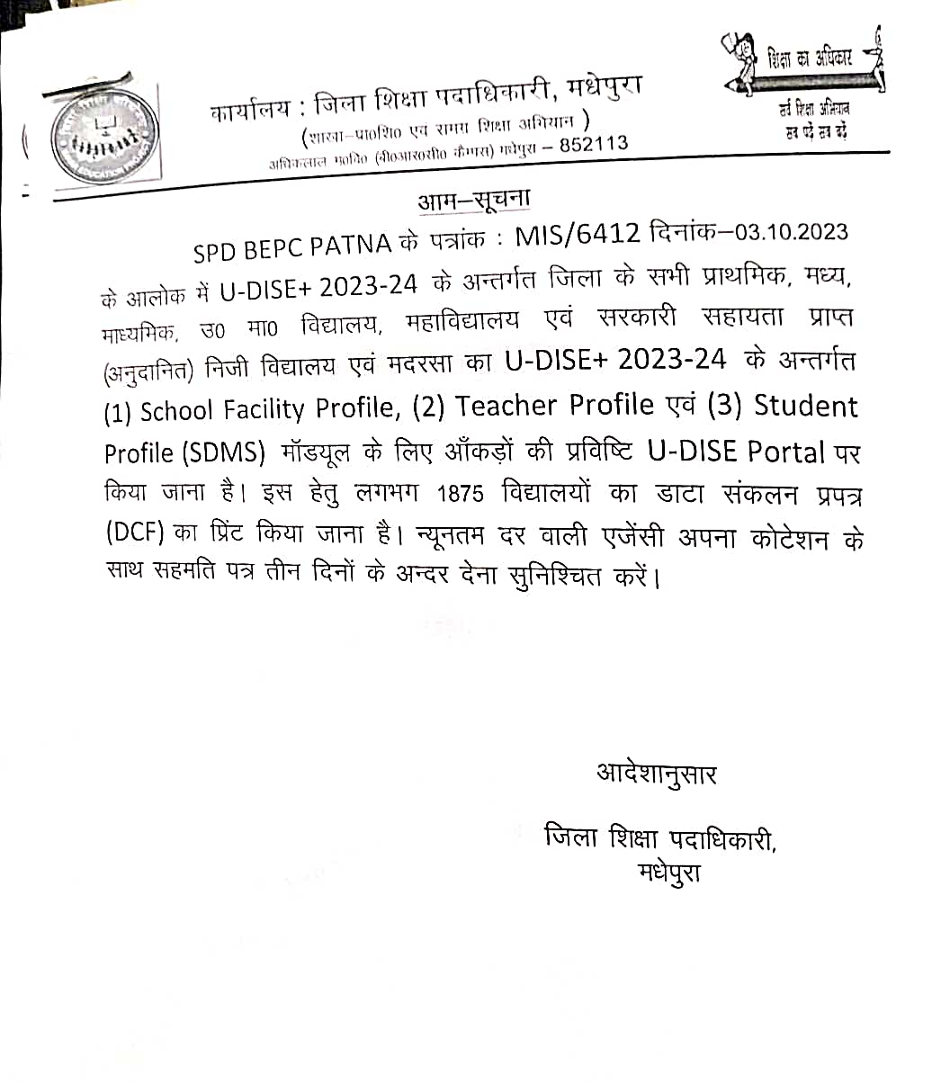 मधेपुरा जिलान्तर्गत सभी 13 के० जी० बी० भी० में सामग्री उपलब्ध कराने हेतु प्रपत्र